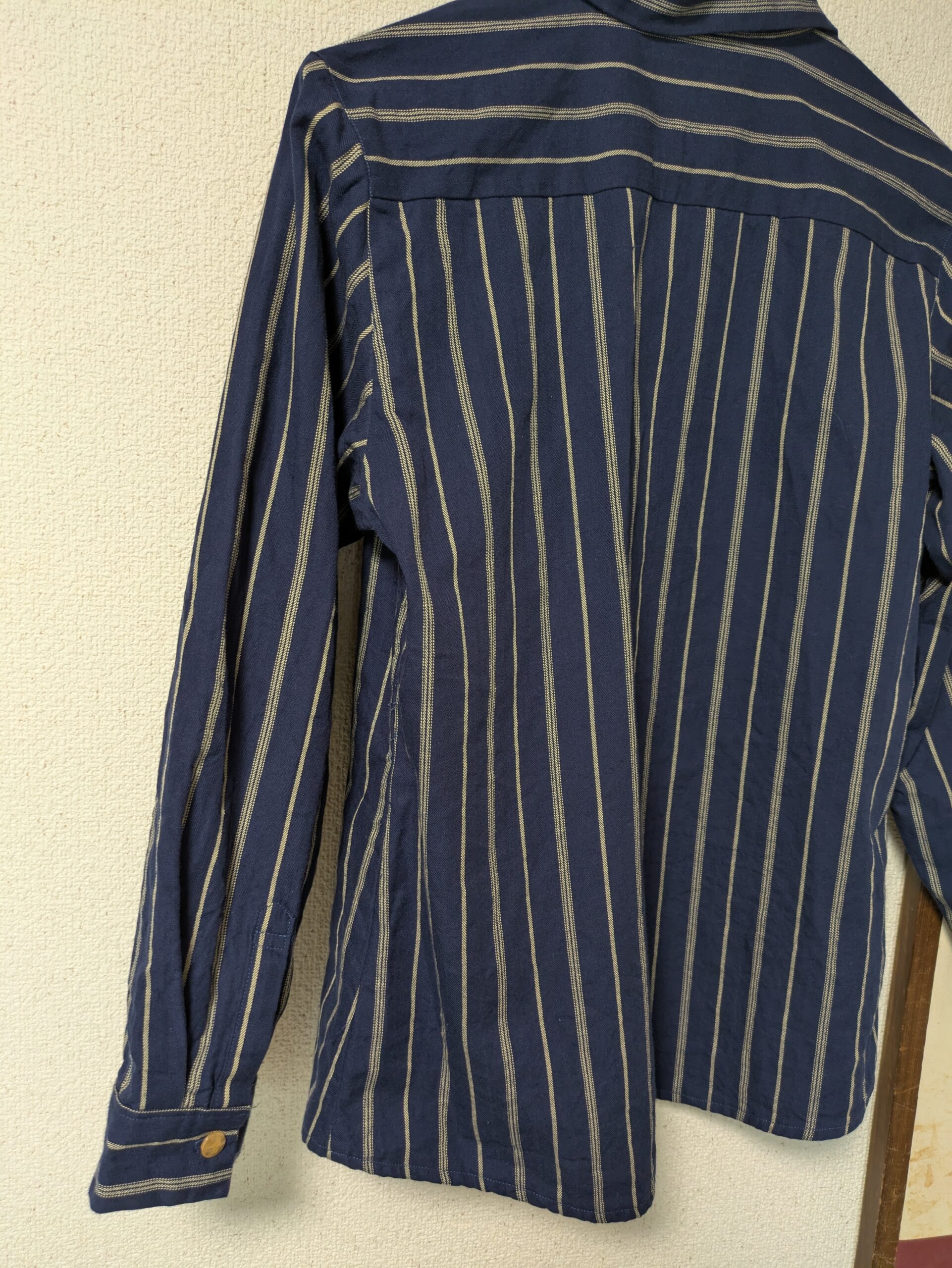普段着はユニクロのレーヨンシャツ。第一ボタン開けるとなんかおさまりがわるい。なぜ